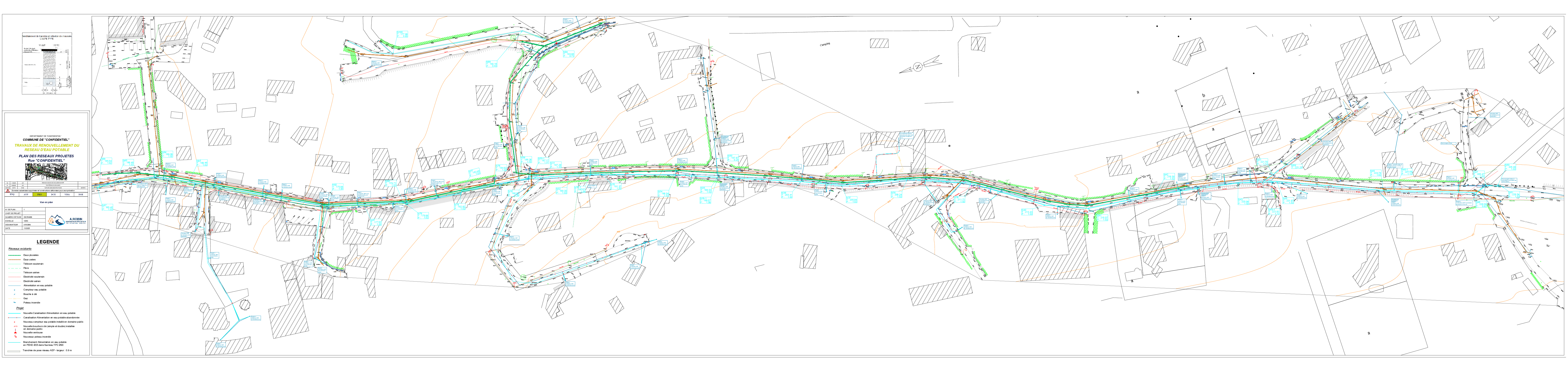 - Tracé du nouveau réseau AEP selon les détails de l’étude préliminaire (diamètres, matériaux, antennes) et des enquêtes de terrain (renouvellement des compteurs en domaine privé vers le domaine public, raccordement direct des compteurs existants en domaine public avec nouvelle canalisation)