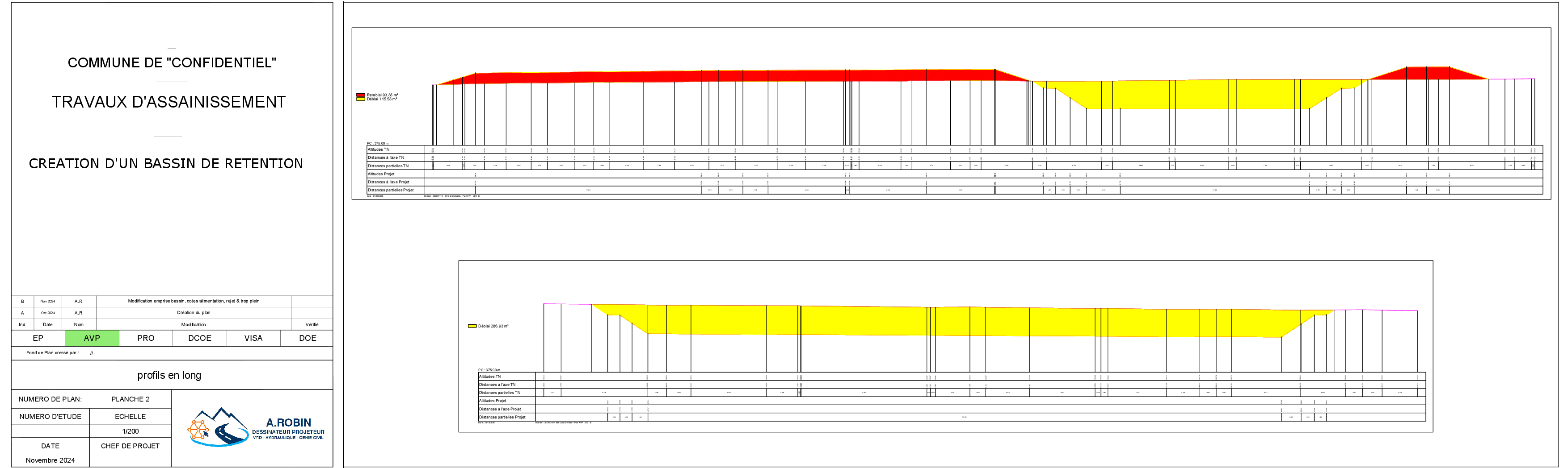 Projet d’aménagement concernant la création d’un bassin de rétention destiné à la gestion des eaux pluviales d’une commune.